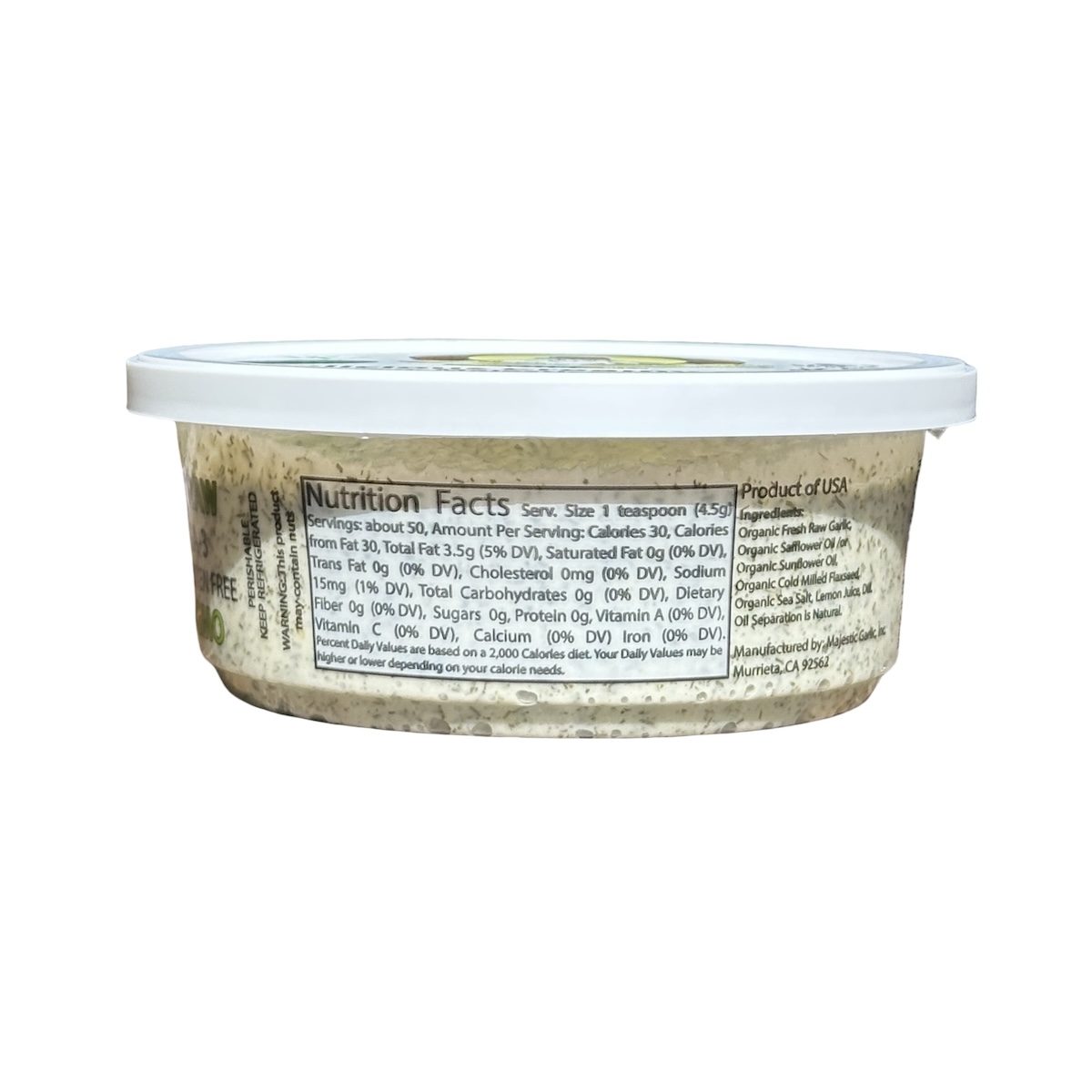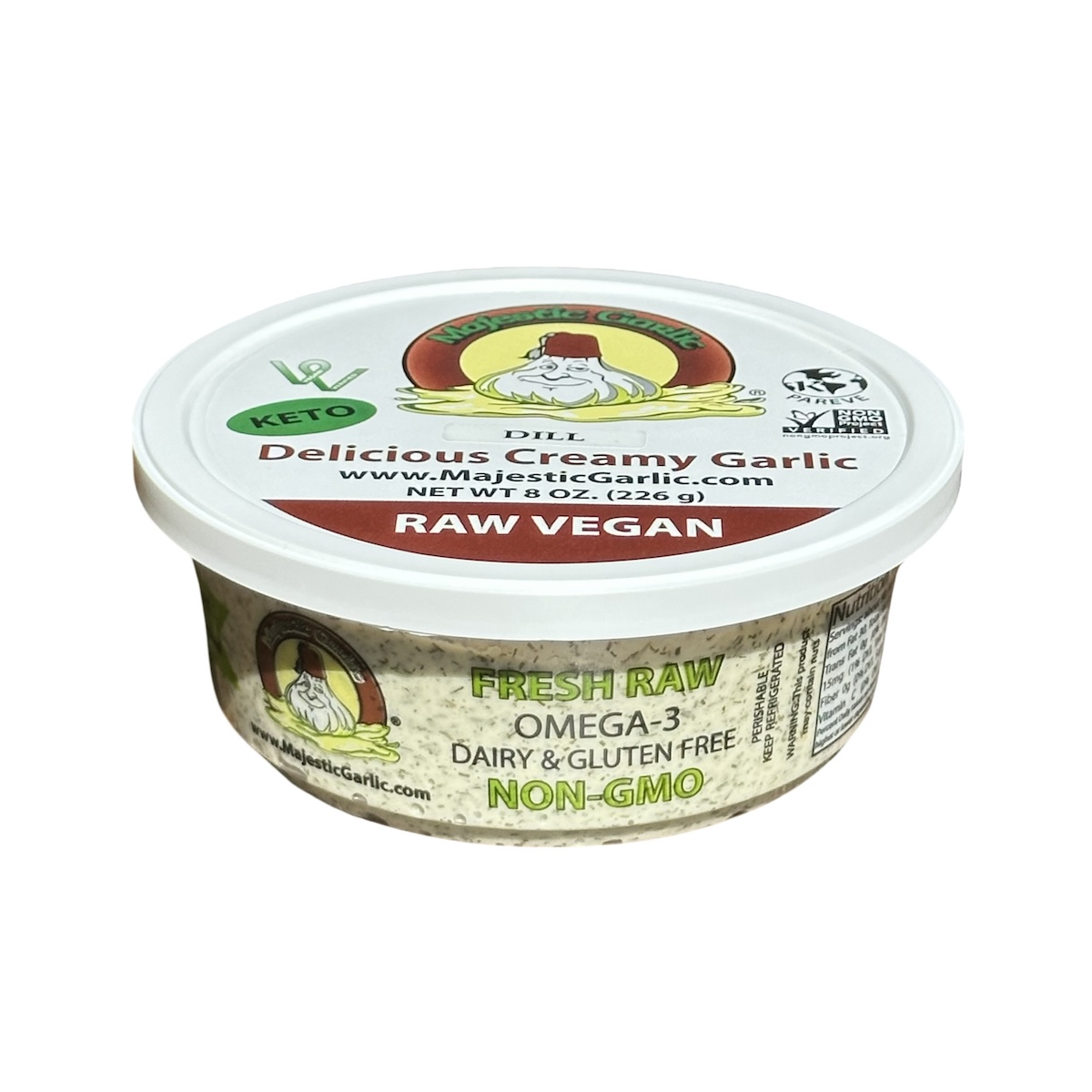 Raw Garlic, Organic Safflower Oil OR High Oleic Safflower Oil, Organic Cold Milled Flaxseed, Sea Salt, Lemon Juice, Dill