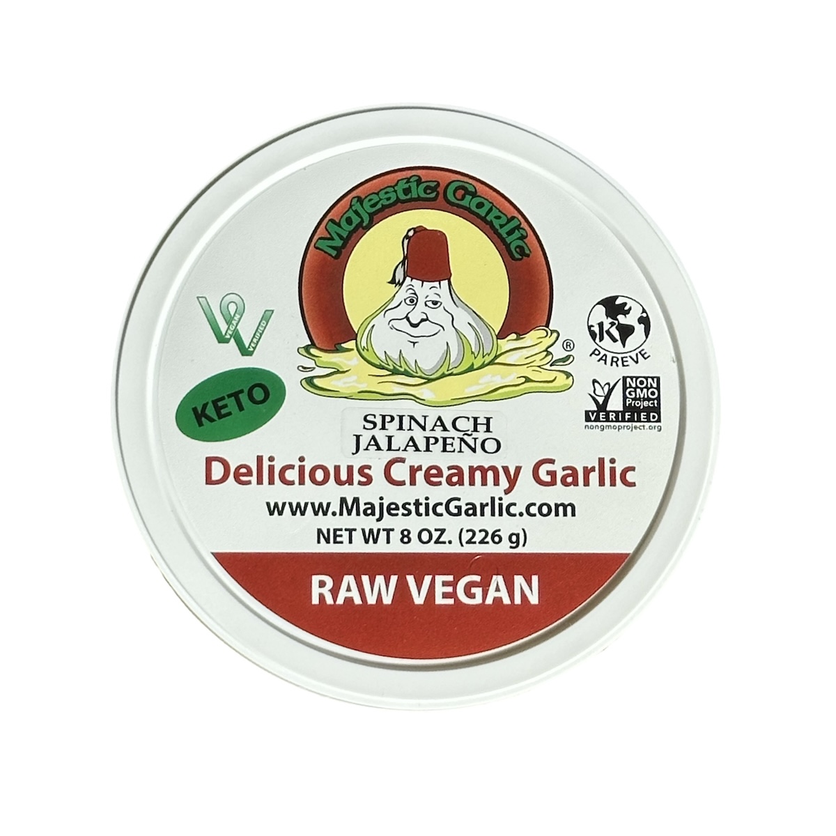 Raw Garlic, Organic Safflower Oil OR High Oleic Safflower Oil, Organic Cold Milled Flaxseed, Sea Salt, Lemon Juice, Spinach, Jalapeno